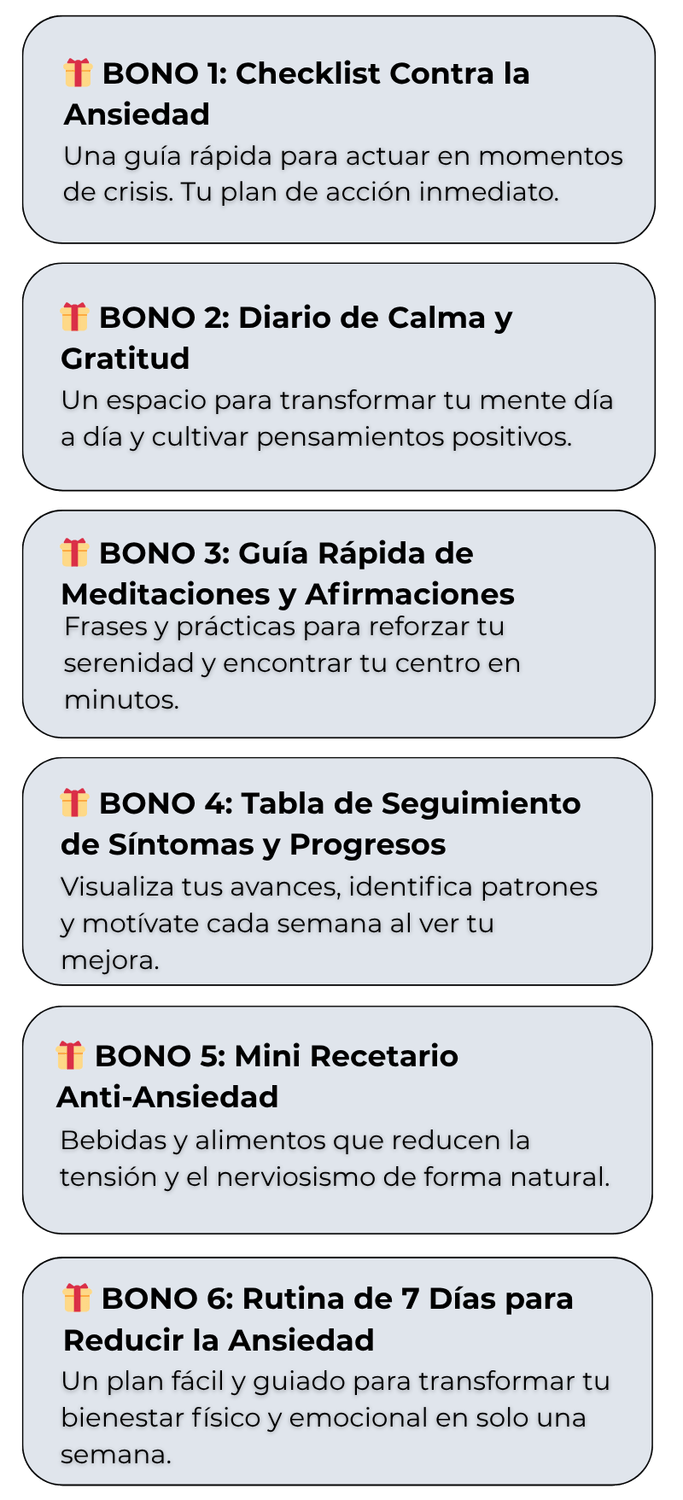 ✅ Calmar tu cuerpo en minutos con ejercicios sencillos y discretos.